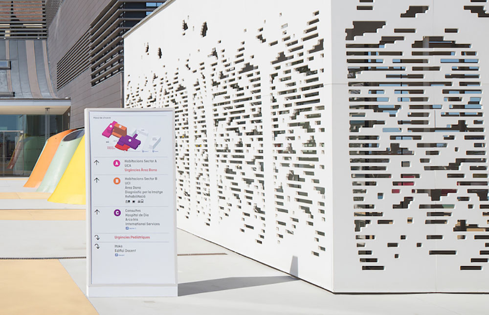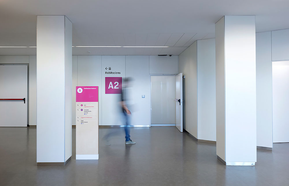 Sant Joan de Deu?是巴塞羅納乃至西班牙最好的兒童醫(yī)院之一。是一所專門(mén)從事兒科、婦科和產(chǎn)科領(lǐng)域的教學(xué)醫(yī)院。醫(yī)院位于在巴塞羅那高區(qū)的山上,環(huán)境安靜幽雅。Rai Botey和Dani Rubio受邀為其進(jìn)行導(dǎo)視系統(tǒng)設(shè)計(jì)。